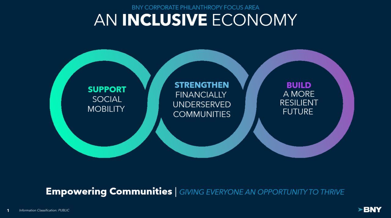 BNY has a strong history spanning over 240 years, during which we have remained dedicated to making a positive impact on the communities where we live and work. We leverage the full capabilities of our firm - including employee giving, time, and talent - to address some of today’s most significant challenges to empower communities and create opportunities for all to thrive.