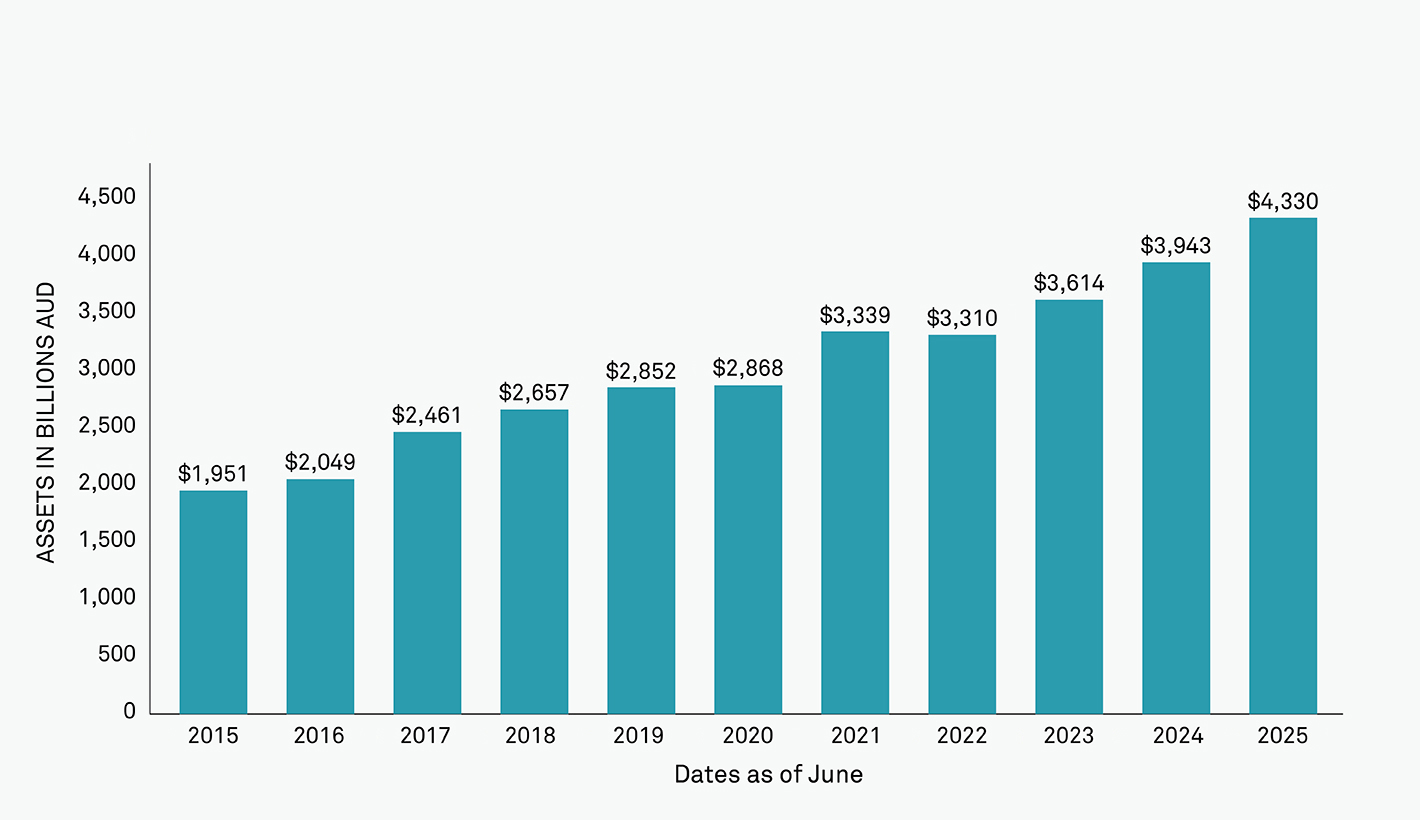 AU SUPERS ANNUAL ASSET GROWTH 2015 - 2025