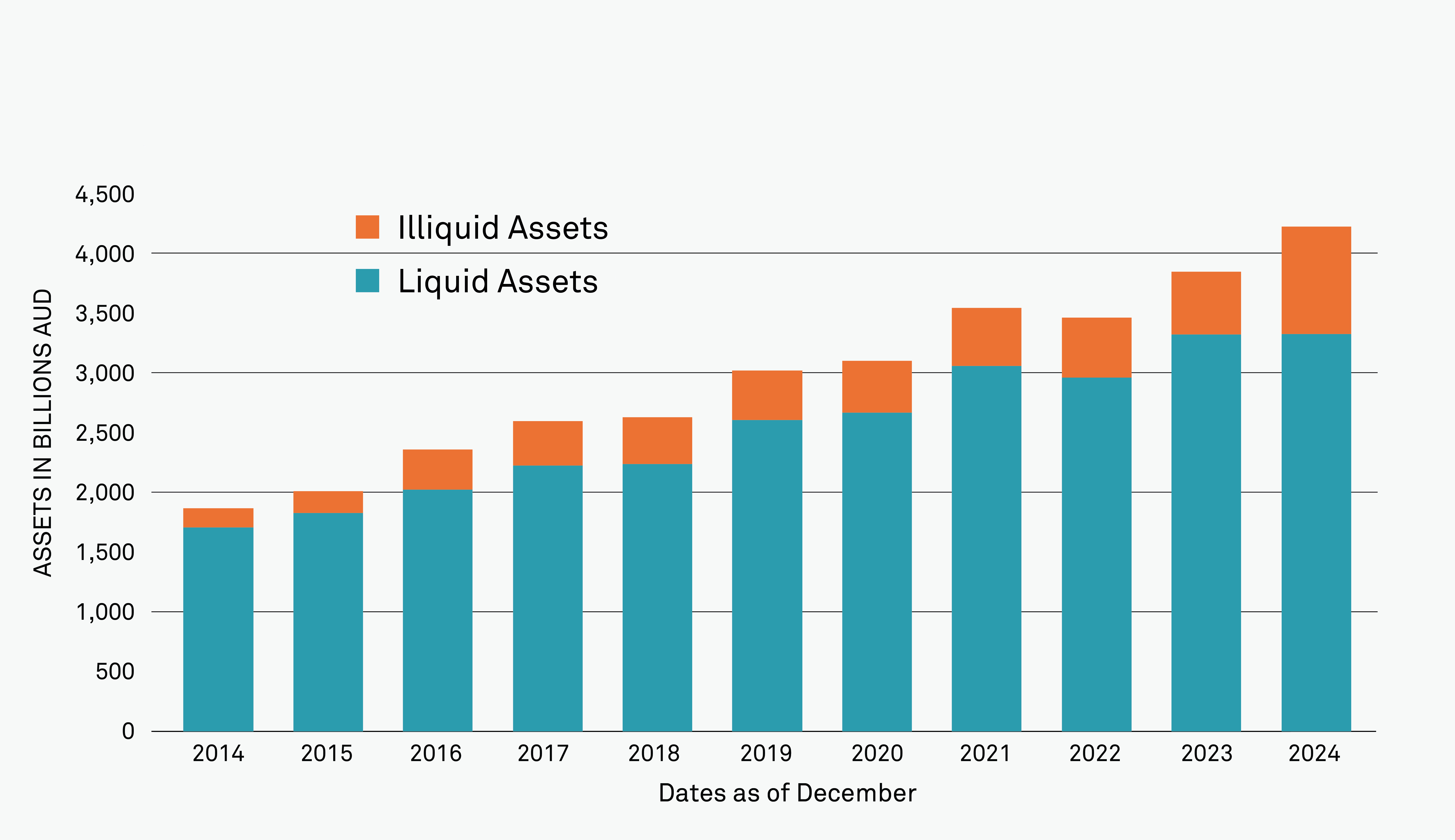 AU SUPERS ASSET MIX LIQUID VS ILLIQUID 2014 - 2024