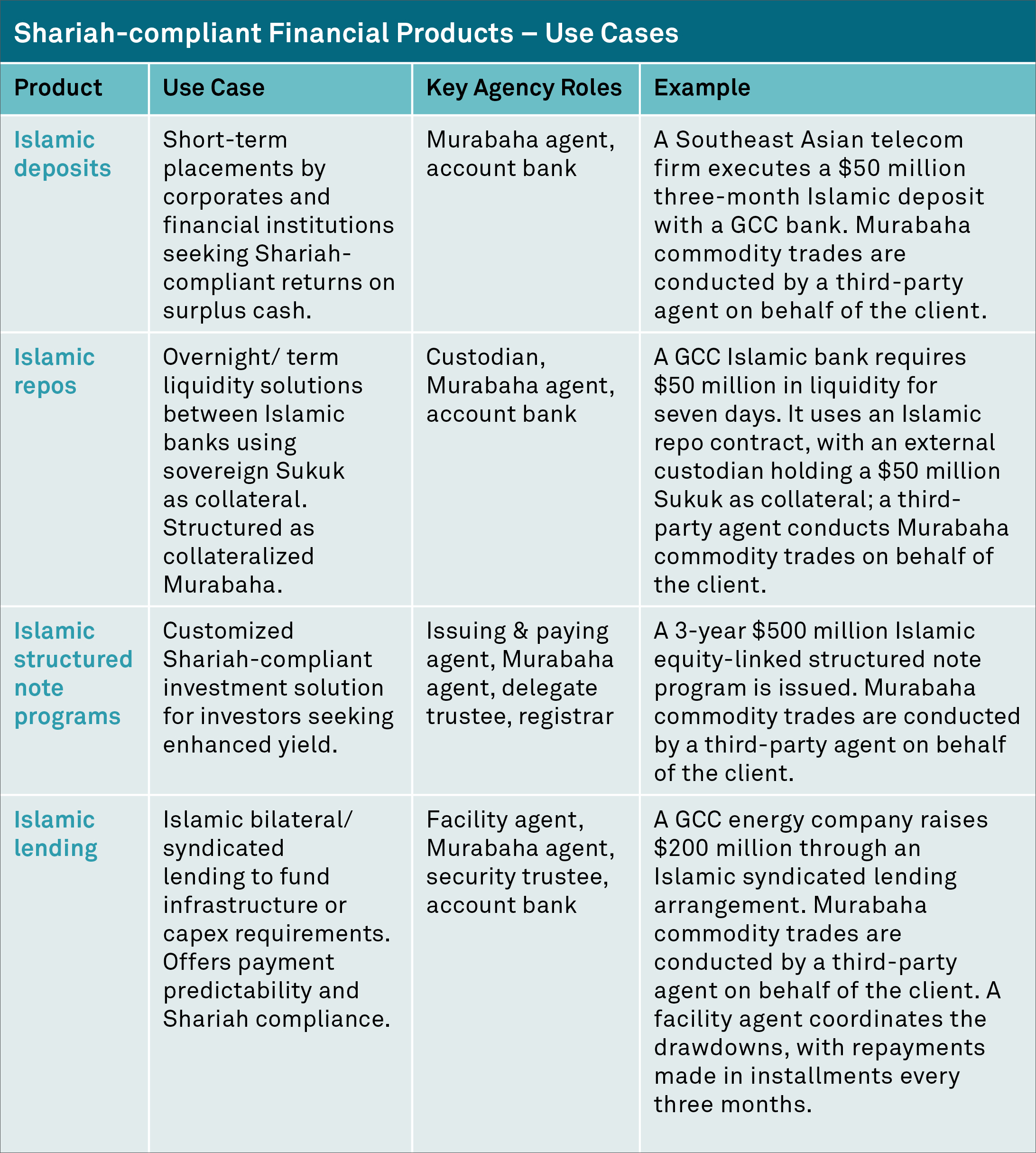 As Murabaha-based structures gain traction, robust agency support is becoming increasingly important to ensure efficient and reliable transaction execution. Trusted intermediaries who can coordinate across time zones, help ensure documentation integrity and facilitate timely cash flows for complex capital market transactions are crucial for successful issuance and post-trade transaction management.