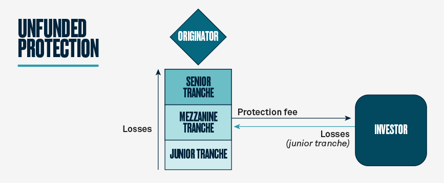 Unfunded CRT structures, typically executed through guarantees or credit default swaps (CDS), continue to play an important role in Europe4, especially when the protection seller is a highly rated institution, such as a multilateral development bank.