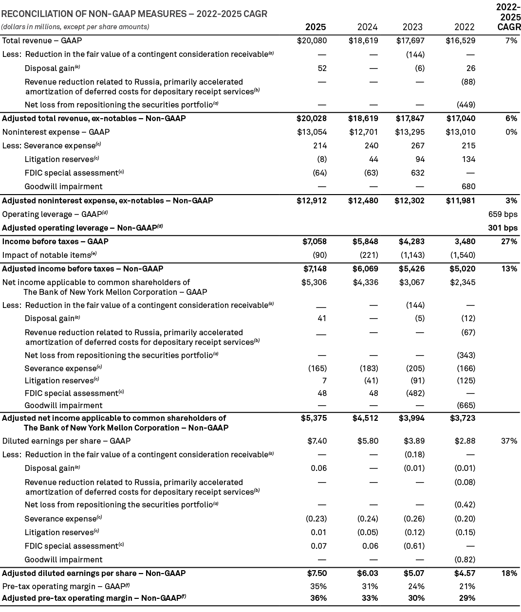 (d) Operating leverage for 2022 to 2025 is the increase (decrease) of the compound annual growth rate for total revenue less the increase (decrease) of the compound annual growth rate for total noninterest expense.