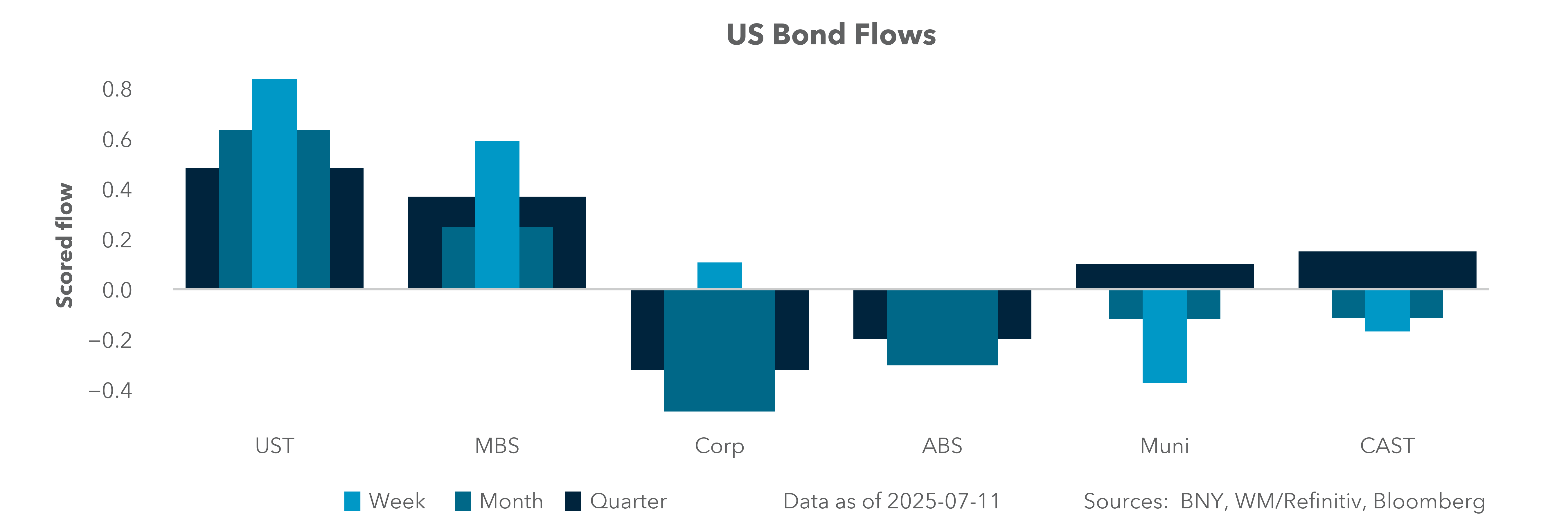 With the debt ceiling now extended, we have been anticipating a deluge of T-bills, and have written about it extensively in recent weeks; see here. This is not unusual. With the Treasury General Account (TGA) down to just above $350bn before the budget bill was passed, it needs to be refilled. Although the Treasury Department issued guidance last week that it aims to target a TGA of around just $500bn at the end of July, we anticipate that by September T-bill issuance will have been between $700bn and $1tn. Of course, Treasury could alter its desired level for the TGA. At the last quarterly funding in April, it revealed that it anticipates an end-of-September cash balance of $850bn, in line with previous quarters, even during the Biden administration. We’ll all be watching the quarterly refunding statement due out at the end of this month to confirm or change that quarterly cash balance target.