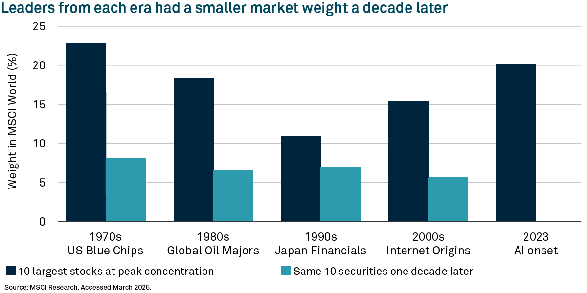 The AI-driven surge of recent times has resulted in market concentration levels not seen for decades. Whilst not commonplace, these episodes do occur.
