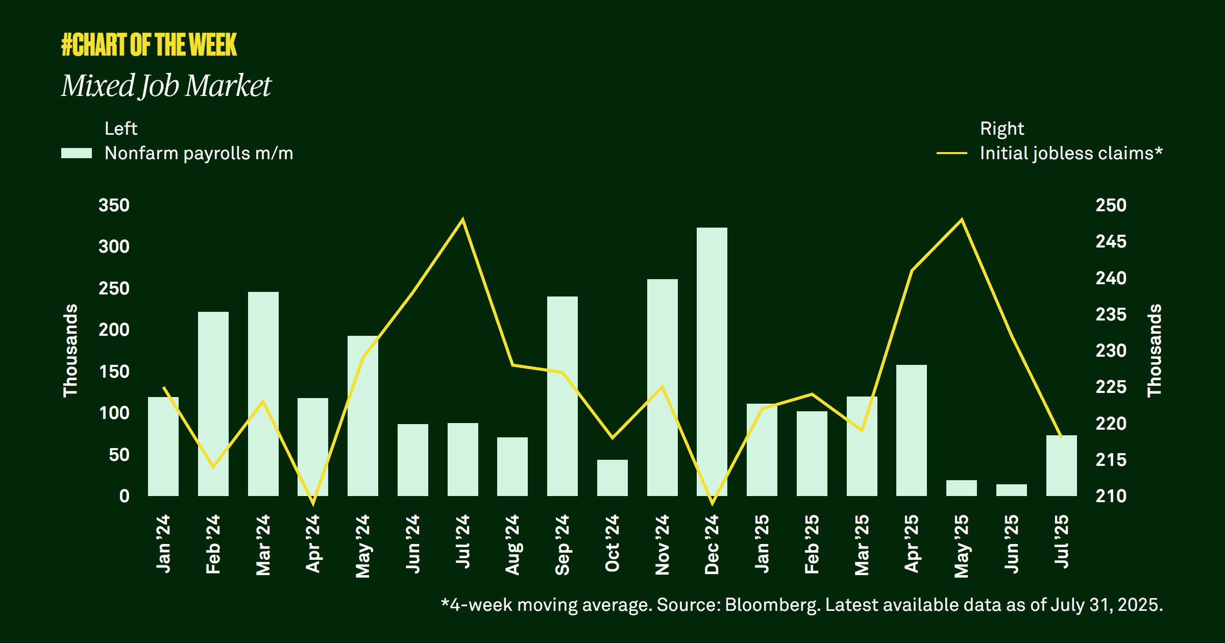 Last week the market received mixed messages about the condition of the labor market. Nonfarm payrolls came in lower than expected, and the previous two months of data were revised sharply lower. Yet initial jobless claims were also lower, and the unemployment rate remains in range. We believe the U.S. economy can still deliver modest growth this year.