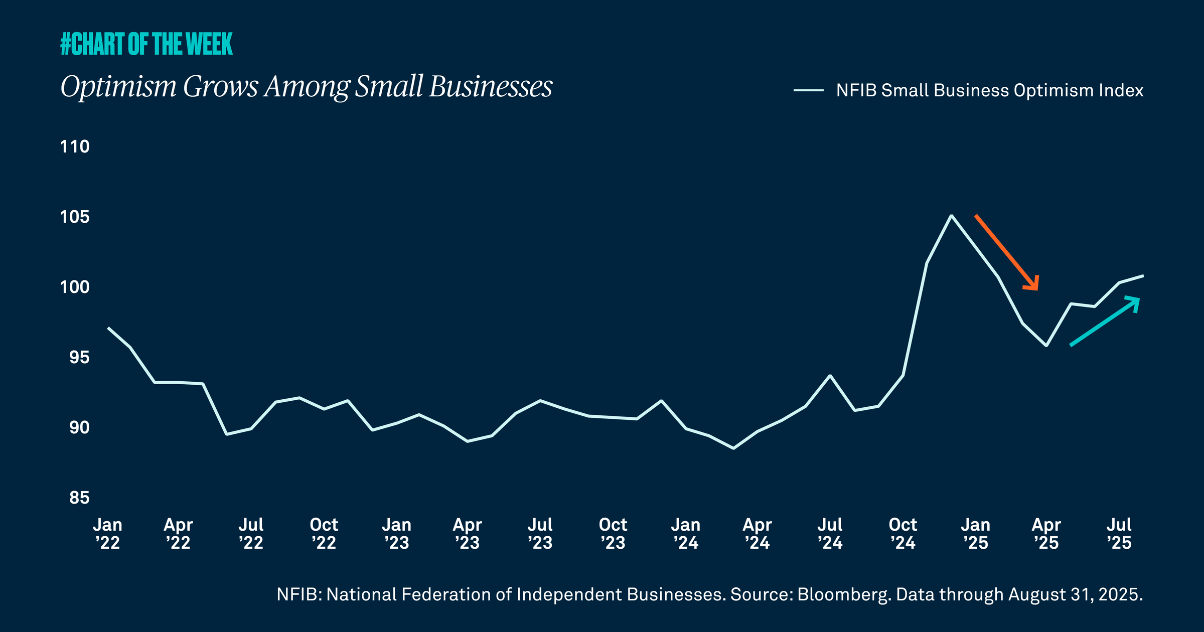 Small businesses are becoming more optimistic, a positive indication at a time when economists are debating whether growth will slow. We view this confidence as a positive signal for future growth.