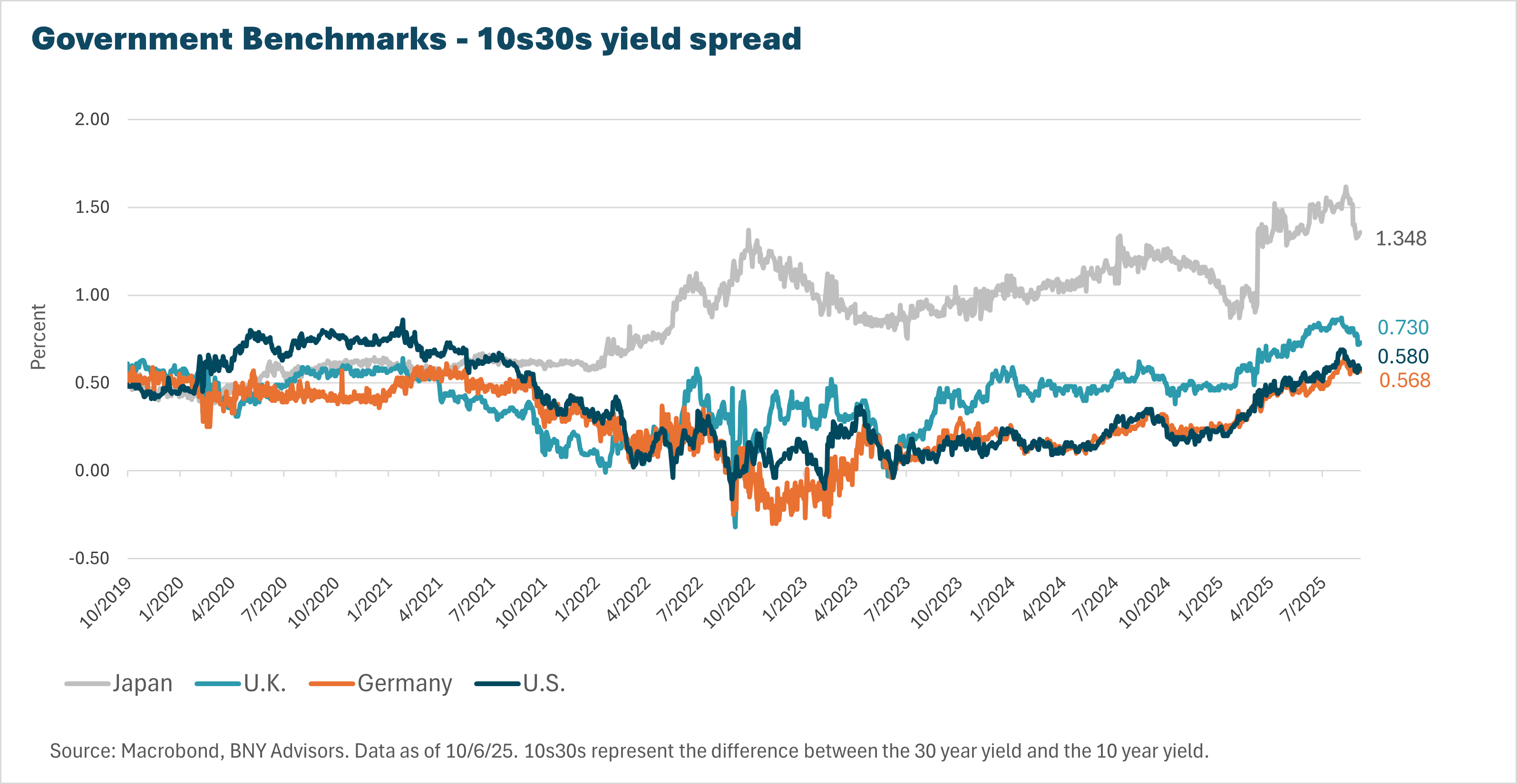 All in all, greater protection against downside JPY risks seems warranted amid uncertainty, but it remains too early to get overly concerned about large-scale fiscal slippage or government debt unsustainability. Outgoing PM Ishiba had maintained a tight grip on fiscal policy - with the primary deficit being brought down to just 0.8% of GDP, its lowest since the late 1990s. Strong nominal growth and tight fiscal settings also contributed to placing Japan’s enormous public debt burden on a downward trajectory – easing from 226% of GDP at the end of 2020 to 210% as of mid-2025. Alongside, the year-to-date widening in term premia and real yields, which have seemed excessive versus advanced economy peers, we believe Japan’s reasonably sound debt dynamics and attractive JGB valuations (especially, on the long end) provide some insulation for rates against swirling political uncertainty.