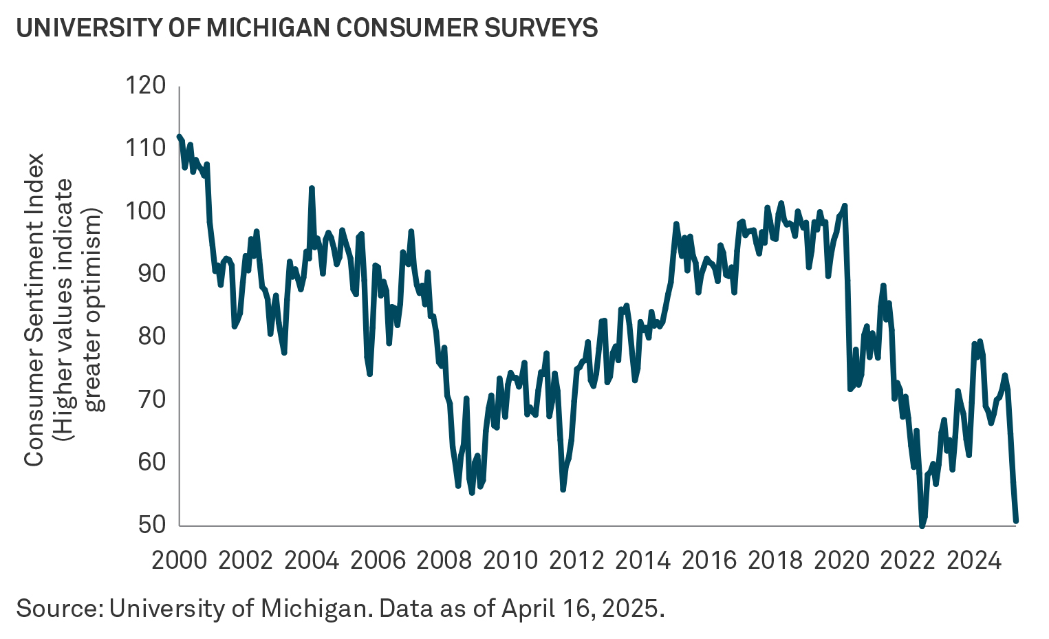 We believe that fiscal intervention in the form of tax cuts may be key to avoiding a recession. Targeted tax cuts, including reductions in corporate taxes, personal income taxes, taxes on tips and taxes on Social Security, could provide muchneeded relief. In addition to boosting liquidity for both consumers and companies, policymakers may need to introduce pro-growth measures to counteract the economic drag of tariffs. We believe there may be deregulation and other pro-growth policies later this year or in 2026.