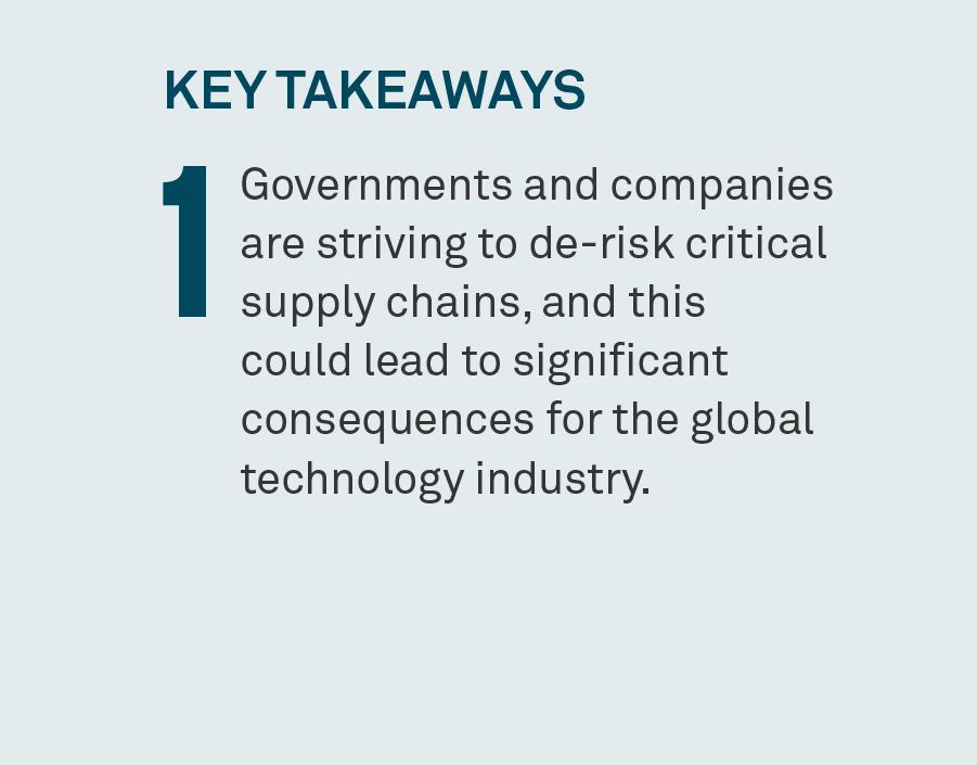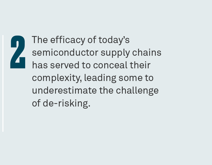 To reorient the existing technology supply chain to materially reduce reliance on specific geographical areas, most notably China and Taiwan (the so-called China Plus One1 strategy), will take time and involve a huge amount of expense. What we have in situ today has evolved over many years, a hyperefficient structure driven by the rigorous logic of market forces. Unpicking it is akin to swimming upstream.