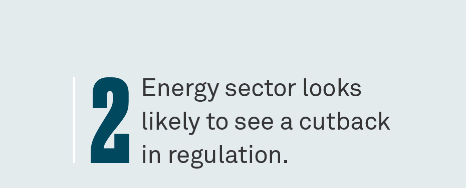 Energy is another sector potentially in line for a cutback in regulation. Trump’s “drill, baby, drill” pledge could increase the domestic supply of oil and natural gas but that could be offset by a tougher diplomatic stance on Iran and Venezuela, restricting supply.4,5 When you net these two forces, the oil price and natural-gas price appear to be favorable at their current levels.