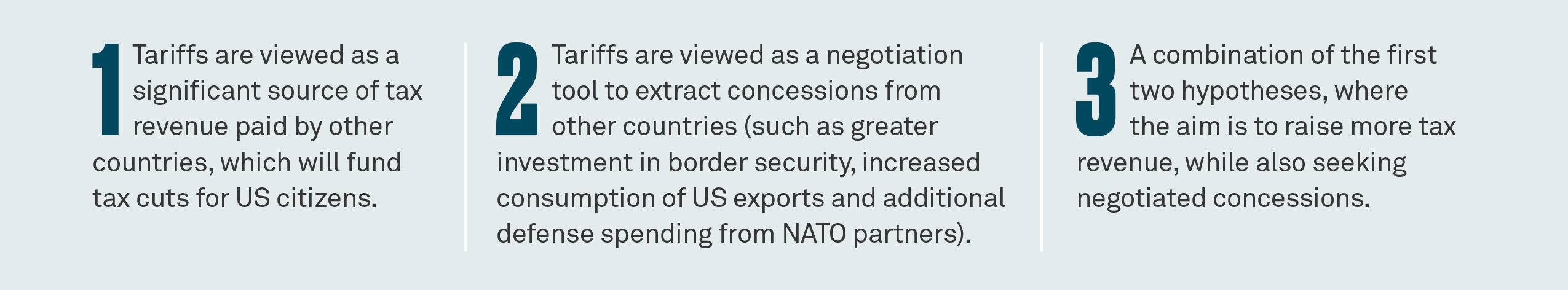 In our view, an upper bound estimate for the tariff “end game” could be provided by assuming that tariffs will increase by the amount required to cover additional fiscal stimulus by the US administration.