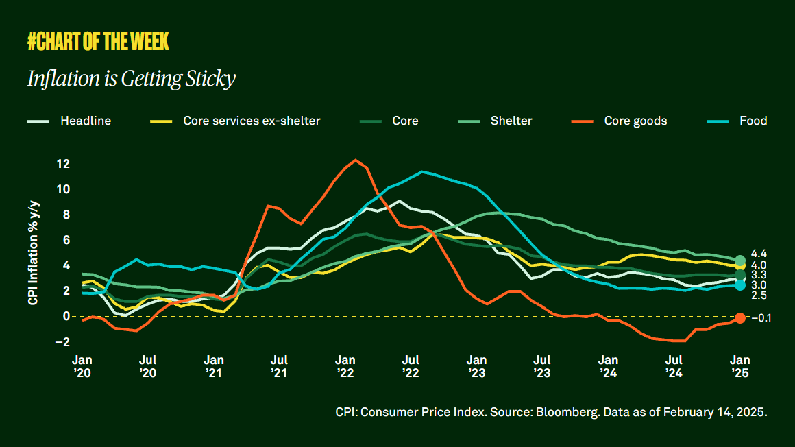 Last week’s Consumer Price Index readings showed that prices rose more than expected on an annual basis. Several components increased and services are gradually slowing above pre-Covid levels. We have always anticipated that the last mile of inflation would be the toughest, and these recent data points indicate to us that we may see sticky inflation persist, potentially abetted by new tariffs and their effect on prices.